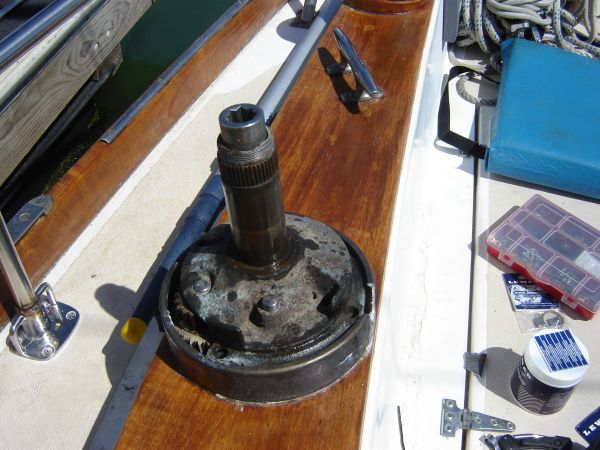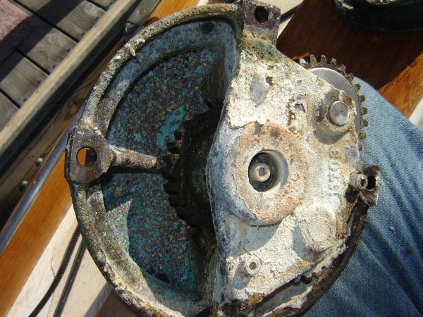 The previous boat owner had advertised that the winches had been professionally cleaned, but the two inch thick cake of salt under the bodies betrayed the fact that these winches had probably never ever been taken apart. I shit you not, I had to vacuum out two inches of salt. I think his habit of pouring boiling water over the frozen winches wasn't helping much either.