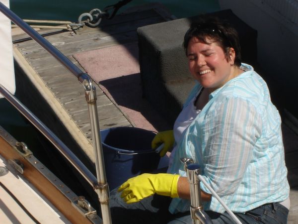 Briana cleaning the hull