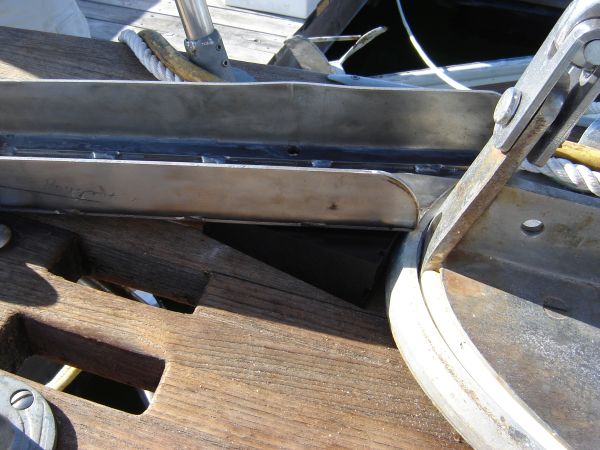 Mike installed the anchor channel and custom-machined Delron backing plate, while Sam and I demonstrated how easily two electrical engineers could mess up the most simple job. We tried to screw the dinghy wheel mounting plate onto the back of the dinghy. It took more than two hours, a trip to the hardware store to get more parts, and we eventually gave up, leaving the dinghy transom full of holes. How do you 'undo' a drill hole?