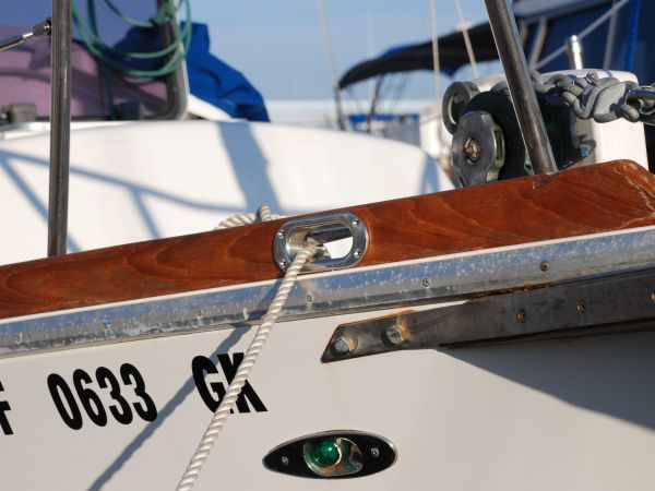 We added another chain pipe on the stern, and also attached a rearward-facing cleat for emergency anchor purposes. I'm really happy about our anchor systems. All three are connected to chain and rode and are ready to go; all are two sizes larger than recommended for our boat in heavy weather!