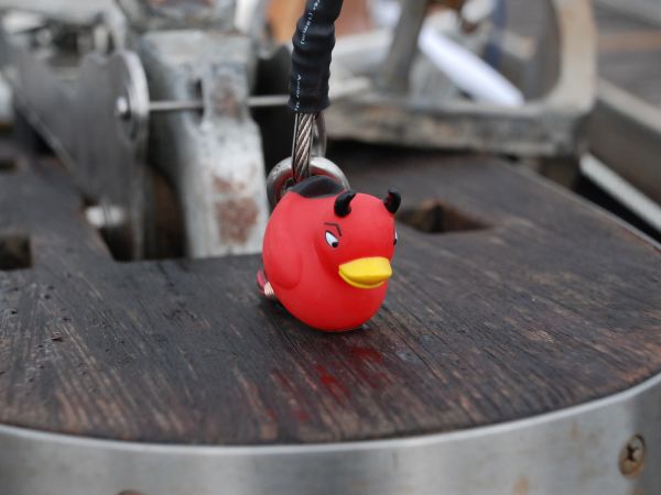 The last thing we did before leaving was install our figurehead: evil devil duck.
