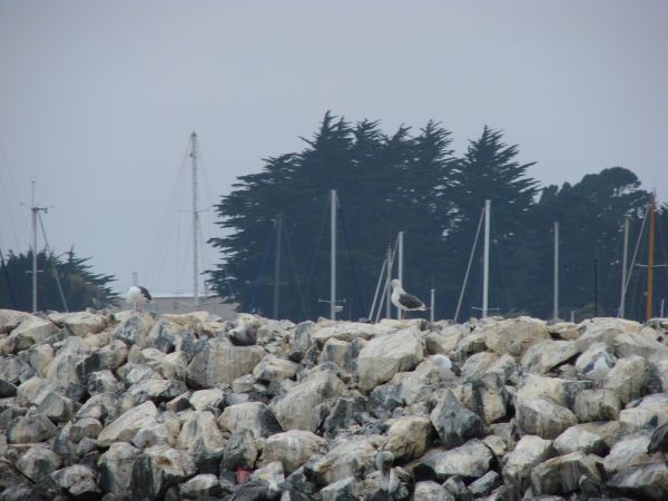The marine layer blanketed the coast. We motored the entire way to Half-Moon Bay, with never enough wind to fill a sail.