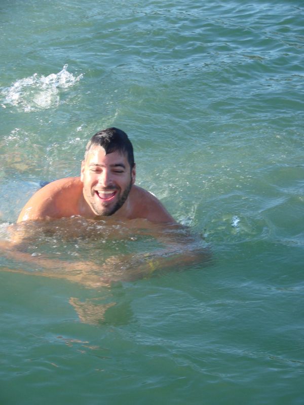We were up early with the sun for a quick swim and shower. Only Sean and Will swam, and they didn't have much say in the matter. Mike and Sara were still smelling sweet. Sean and Will were not. They jumped in, but pushing was threatened.
