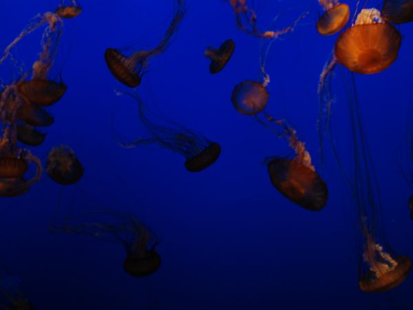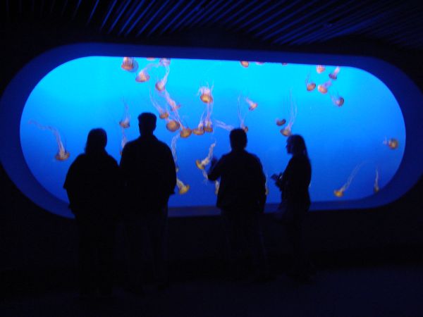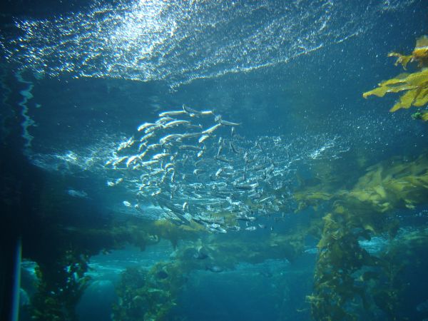 We saw the otters being fed. We examined schools of sardines.