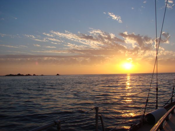 We "sailed" through the night, which was both exciting and tiring. There was some fog, but the stars that weren't obscured were really bright. There was no one else out there, but we kept a keen eye on the radar all the same. Just like in Mexico, we saw two types of phosperesence: a deeper general 'glow', like from our prop, and discrete surface lights that would sparkle brighter than stars!