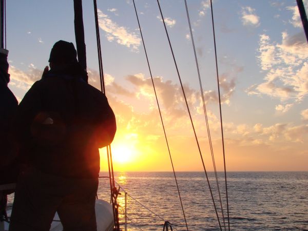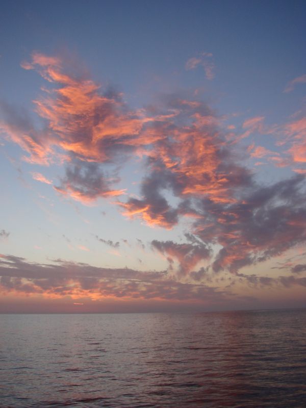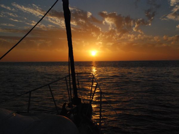 The sunset was beautiful. We tried to sail for a short time, but there was no wind. I guess because we had sailed just two days ago, we were okay with motoring. It sucked, but no one talked about a "change in leadership" like they did before.