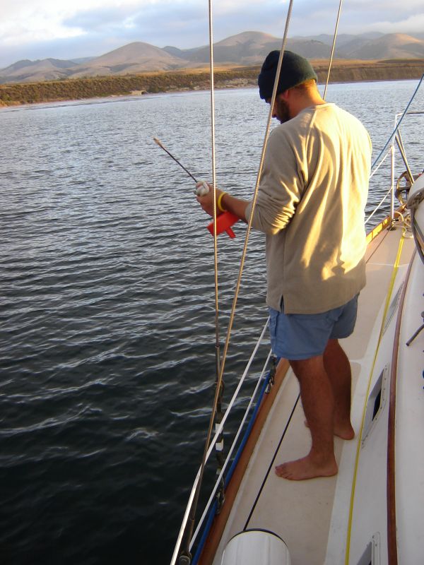 With Sean back onboard, we weighed anchor and Mike took us out of Cojo Anchorage and along the Southern California coastline. At first there was no wind...