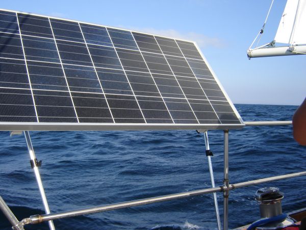 Near dusk we encountered another sailboat, Espiritu, heading the opposite direction! We hailed them and inquired if they were experiencing any problems. They called back and said yes, they were fighting an electrical gremlin. The engineers immediately perked up, and while maintaining our own course the boys tried to help.
