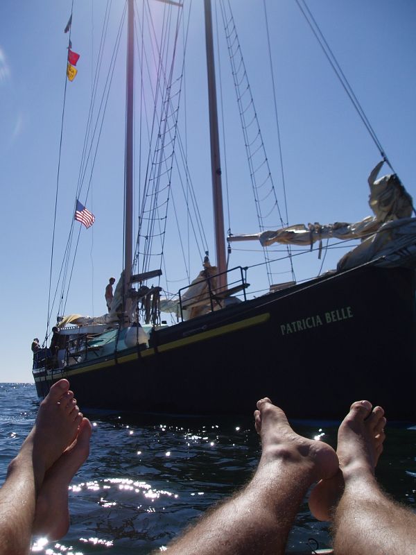 Legs draped over the side of the dingy and clutching cold bottles of beer, Sean and Will went boat to boat and greeted our fellow Haha-ers. Almost everyone was eager to recount some sailing story, have a picture taken, and say a general hello. The Patricia Belle receives special mention for most resembling a pirate ship - even the crew look like pirates!