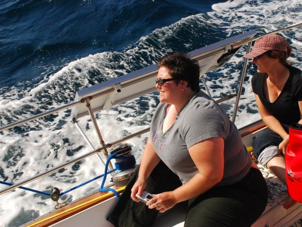 The night shift watch - Sean, Sara, and Briana - thought they had left Will in good shape to finish in just a few hours, with an idiot proof course and lots of wind. Everything was fine until 2AM, when the wind decreased a little and the boat slowed to 5 knots. Okay, no worries, we'll finish at 4AM instead.