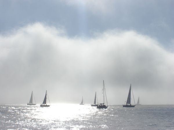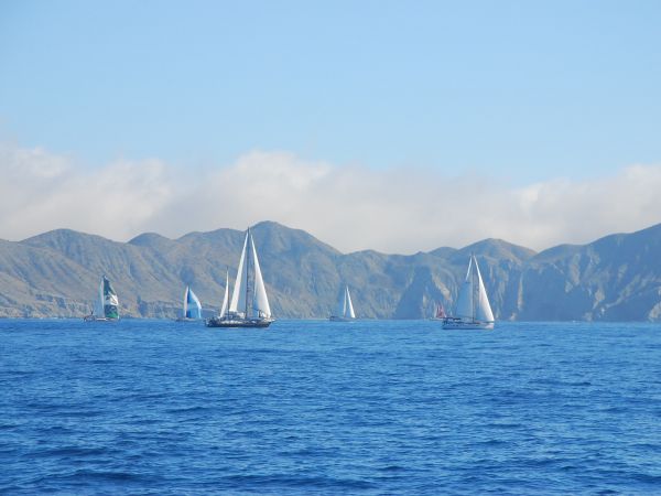 The winds were negligible and we motored to the starting line. Richard, the Haha Grand Poobah, soon came onto the VHF nt and announced a rolling start: an hour's worth of motoring at 6 knots would be permitted with no penalty. We motored until we found wind, just before the deadline, and began to sail.