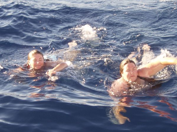 Sara and Briana swim