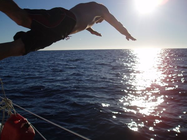After the disappointment of losing two beautiful tuna in one afternoon, and with the wind doing absolutely nothing, all of us 'Lusters decided to go swimming. Nothing brightens the spirits more than jumping out of 100 degree air and into 85 degree water. Let's just say it was perfect.