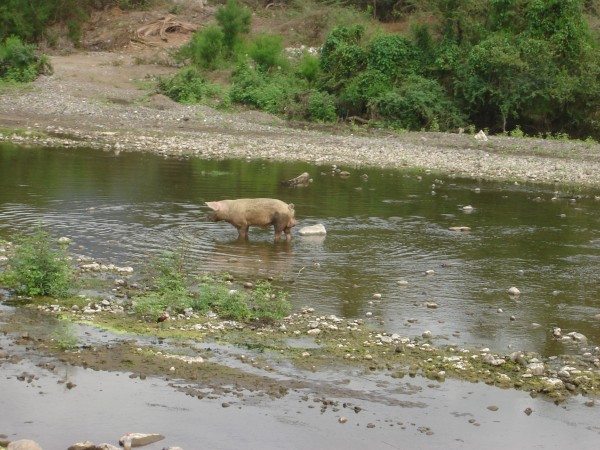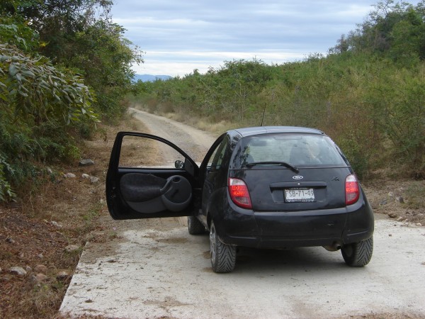 We also saw pigs in the river, and lots of other farm life. Like turkeys. Will insists that this turkey is different from all the others he's seen, but I think he's really just a city boy. We got within a few miles of Los Ortices, near Los Asmoles, but the road was washed out and rutted, making it impassible for the Ka-lm Iguana to continue.