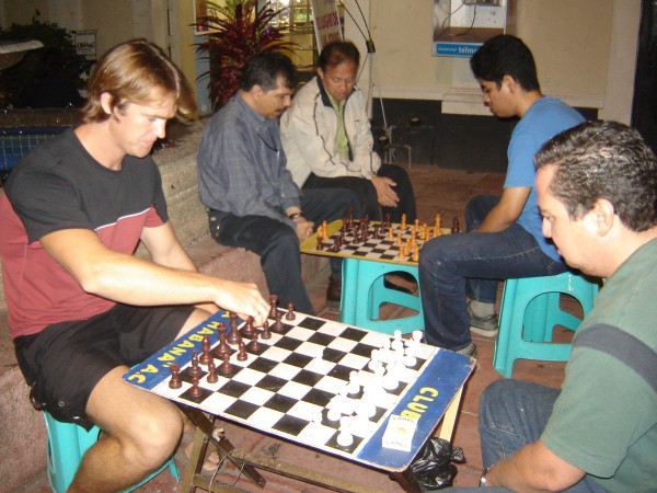 After the music, a sweet lady and her sister came to give us a kiss on the cheek and to ask if it was our honeymoon. They were so welcoming, and it was wonderful to be in a new part of Mexico. We wandered around, and found the open game area, where we watched a group of men play chess.