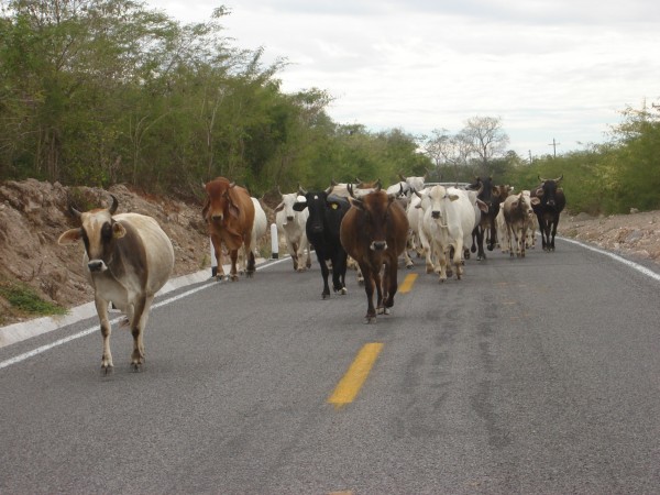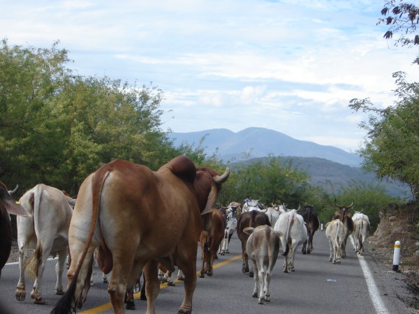 On the way back to Ixtlahuac'n, we crossed the path of several cows. Coaxing these guys out of the way was difficult. They move at their own pace. It was entertaining.