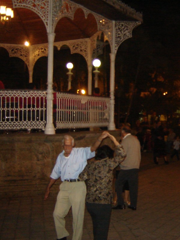We wandered around the streets, meeting people and finding craft markets. (Notice the new orange scarf?) We grabbed a picnic dinner from Burger King - hey, everyone needs a break from Mexican food once in a while - and sat down to some wonderful live music. Will bought me a rose, and we danced with the locals.