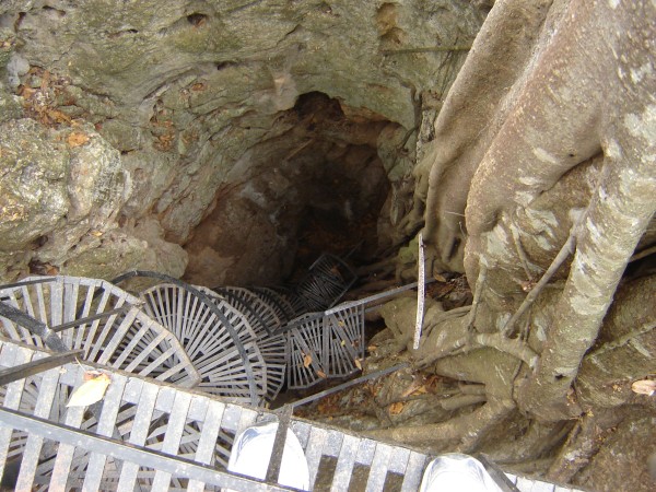 I have been to caves in Wisconsin. In my experience, they are big openings that you walk into and poke around in, and then leave. Not this cave. The opening was buried inside the mountain. I couldn't see the bottom of the spiral staircase.