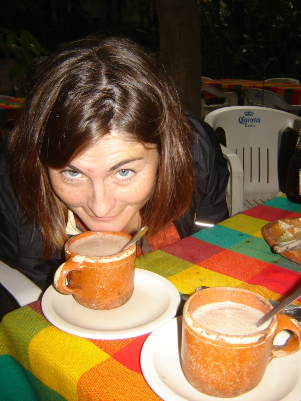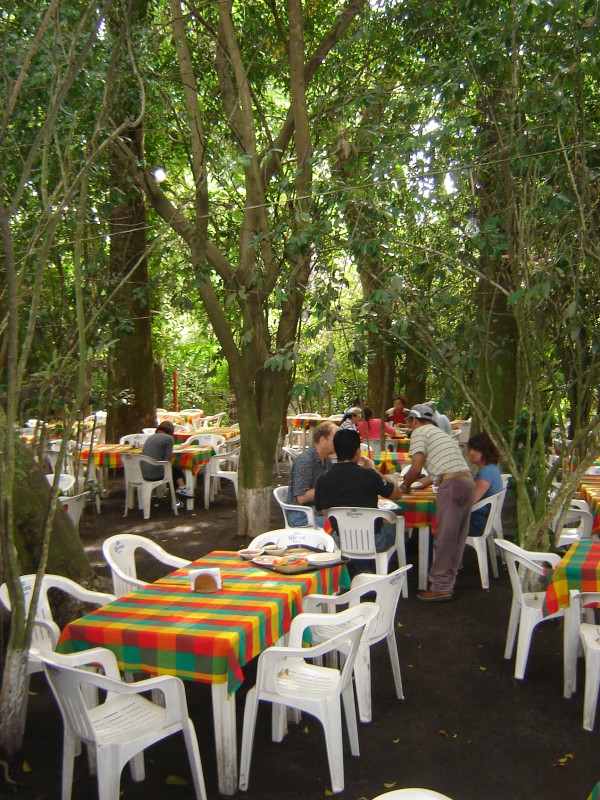 As we headed back down the volcano, we realized that we were starving. We decided to take Julian's advice and have lunch in Suchitl'n. It was delicious, and the patio was nice and cool. We had fresh todopos y salsa, chile rellenos with meat inside, grilla mixta, and chocolate caliente. MmmmMmmm good.