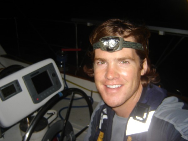 We left at 3AM, timed so we would arrive in Zihua in the morning a day later, and immediately discovered one of our navigation lights had gone out. It turns out a crimped connection had vibrated itself apart, and I would have to dig out the soldering iron and extension cord to fix it. No way, we just zip-tied one of our waterproof red-LED headlights to the bow rail! It worked perfectly.