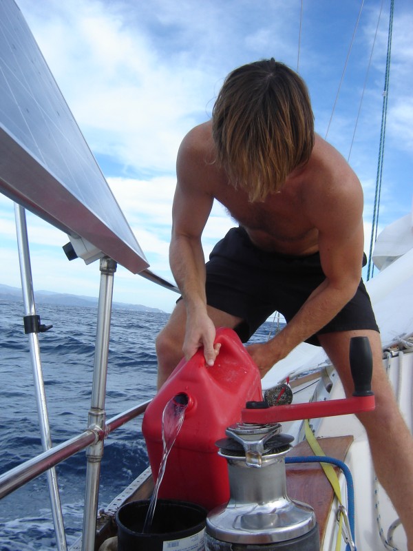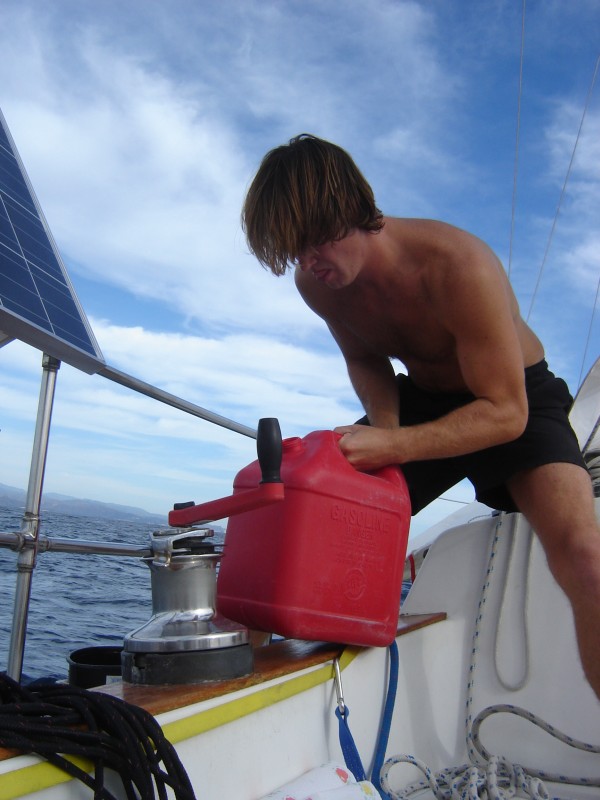 It was a good thing I was pouring slowly, otherwise I wouldn't have heard the tank filling up. In all we put in six gallons, so it had been a totally unnecessary operation. Oh well. At least we were absolutely sure we had enough fuel!