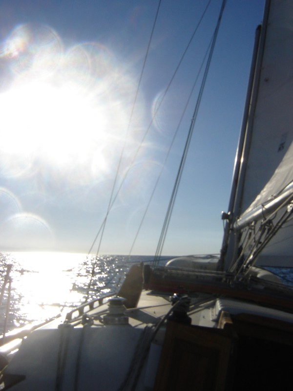 Better yet, with the wind coming off the shore there weren't even many waves! We had some swell coming with us from the north, but no wind waves to speak of. It was really wonderful, one of those days where everything feels perfect. We lounged around, occasionally trimming the sails, but the intensity and direction of the wind barely changed all day.