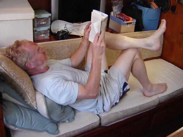 We ate the popcorn Sara made and instead took a bag of peanuts for the potluck, as well as books to swap. The book-swap and potluck were much as expected, with bags of books and platters of food circulating and people taking what they wanted. Then it got (to a Brit anyway) seriously weird with couples asked to share romantic cruising (ocean-going, this is a family blog) experiences and reasons what they appreciate about their partners - and some of the romantic disclosures certainly weren't appreciated by the partners.