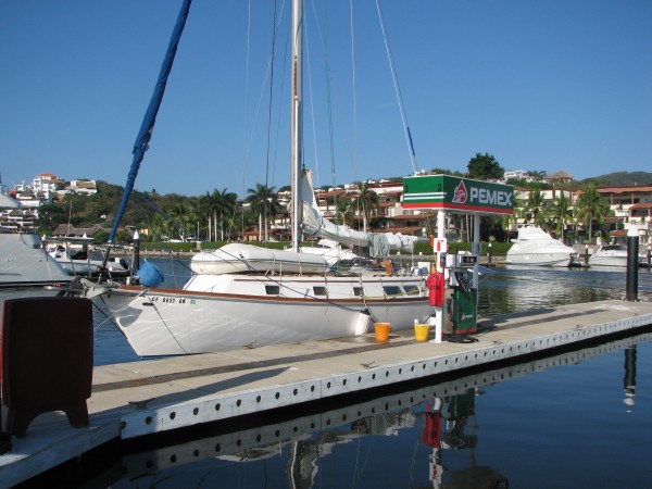 [ Will: It sucked, the Marina Ixtapa people wouldn't let us take on water from any of the empty slips or unattended taps. They wouldn't sell us water. They refused to hear our arguments, and said only that we had to rent a slip for the day to get any water. Totally crazy, these guys are going the way of Cabo, and I couldn't have been more angry with them. I'm going to write a letter to someone. We will never stay here, never refuel here again. ]