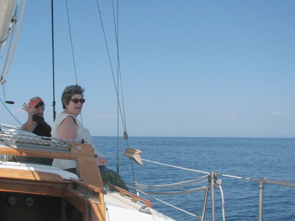 Ann and Sara as we heel over