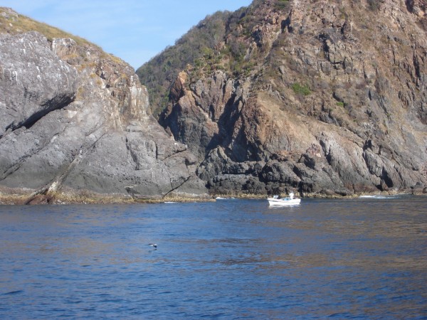 We anchored in the beautiful sheltered bay, and had to be quick with the provender as the crew was getting famished.
