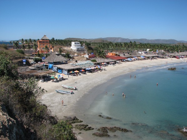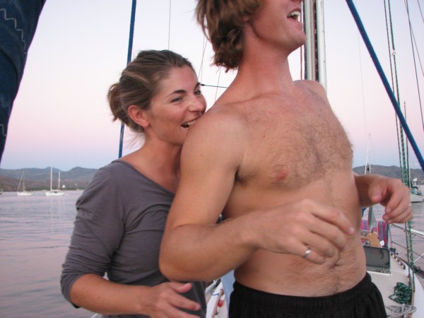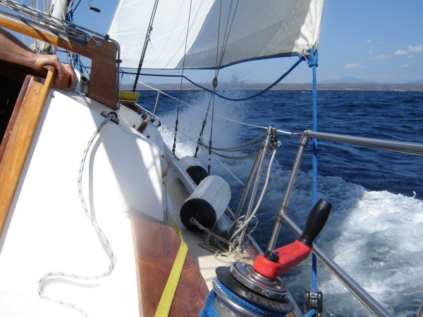 [ Will: entering Tenacatita Bay we had perfect wind, right in the 20-25 knot range that Wanderlust likes so much, and at a perfect angle for us to come into the anchorage. We killed the engine and roared across the bay, shooting plumes of spray whenever we crashed through the chop. ]