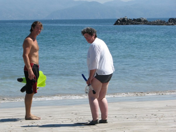 As we hauled up the anchor on Thursday morning, we scrubbed every link to remove the fine mud that would otherwise fill the chain locker - a lesson learnt on the way down, then ho for Tenacatita, a very short trip with some good sailing once we'd turned from heading up the coast to crossing the bay.