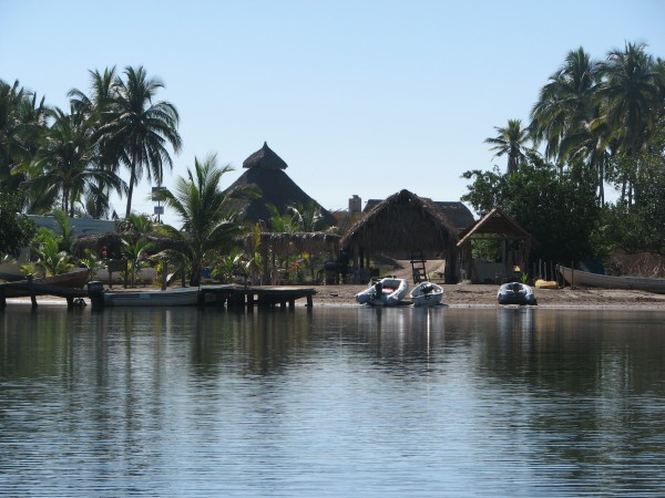 Barra de Navidad is a lovely little town in the Bahia Navidad and our anchorage was in Laguna Navidad, reached through a narrow channel between the town pier and a luxury hotel. It's shallow, even for the dinghy, going across the lagoon to town, but what a nice little town. It caters to tourists and sport fishermen, but retains its Mexican charm.