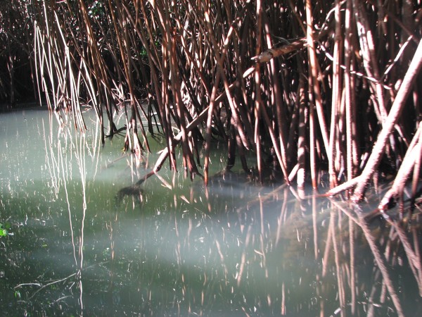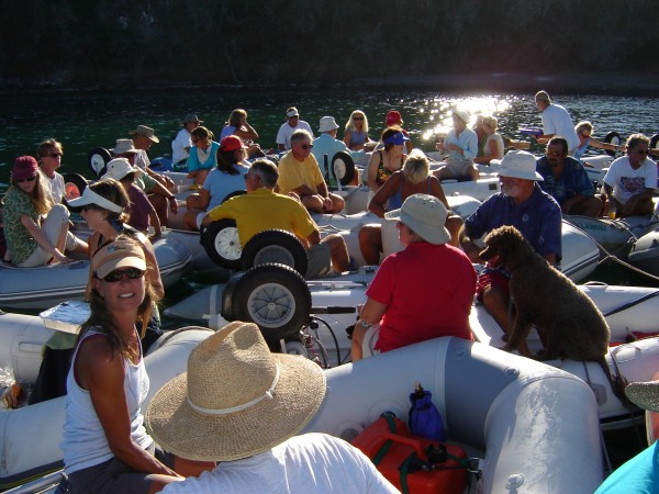 Ann & Will went shopping, while I took our gear back to Purpeat. As I waited, I chatted with a guy using my pathetic Spanish plus sign language, til he put me out of my misery by saying he used to live in Las Vegas. We jumped into the dinghy & headed back through the swamp to Wanderlust ready for the weekly raft-up.