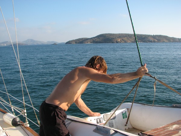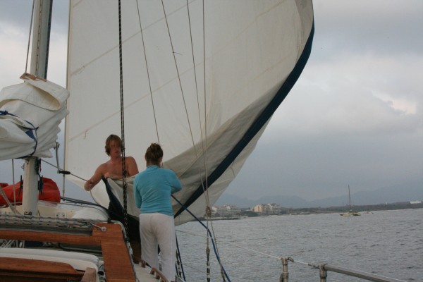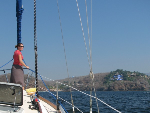 We took the opportunity at Punta Mita to change our headsail. We were using the bigger 150% genoa, but as we headed north both Sara and I noticed that the boat was a bit overpowered. The 100% jib is a much heavier sail (it takes up about the same space in the sailbag!) but will be better suited to the weather we have ahead of us.