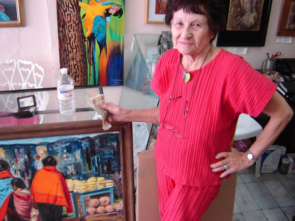It was a long shot, and she bargained hard, but we could tell that her heart just wasn't in it. The painting was ours. An agreement was reached, and the painting was packed up just in time for the proprietor to return. We hastily beat a retreat and noticed him giving her a death glare for succumbing to our love story. Haha! Your mom is a sucker!