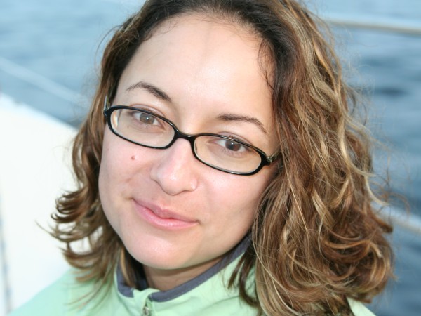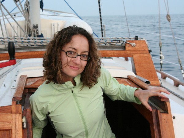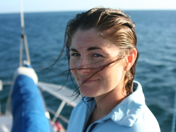 Sara happy at anchor