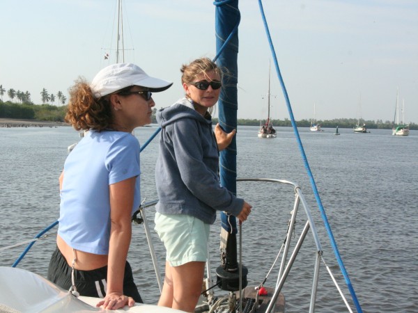 We arrived at San Blas earlier than we had planned and anchored among the other boats just off the shore. As Will maneuvered around looking for the right spot, we noticed two other Gulf Stars lined up and took our place right between them. The crew of each boat was surprised to see three all in one place, since Gulf Stars are made all the way out in Florida and not too common in the Pacific. Sara worked the anchor as Will positioned the boat in the right spot, and soon we were getting purpeat ready for a visit to town.