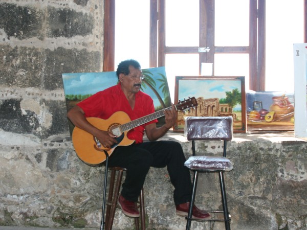 After a short hike we came upon the ruins of the old fort, which had been restored complete with canons and all. Sara had heard from another sailing couple about a local guitarist that performs at the fort, and we had been on the hill only a few minutes when he approached us to offer a song.