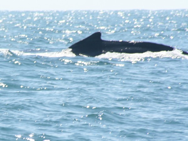 The whale was pretty close and enormous. I couldn't believe what I was seeing right next to the boat. I looked in time to see it's huge side fin surface and then the tail fin followed with a splash. It was truly amazing to see that up close. I realized how small wanderlust seemed compared to the whale and suddenly felt how tiny we were in the middle of the vast ocean.
