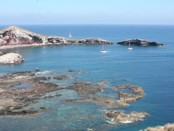We arrived in Isla Isabella in time to get the last good anchorage spot in a rocky cove framed by the island's hills. It was still warm enough to snorkel and we quickly got our gear on and jumped in. The water was so clear you could see all the way to the bottom about 25 feet below. We saw beautiful brightly colored schools of swimming everywhere below us. Some were in schools, others were swimming slowly around on their own, and all had gorgeous markings. Sara and Will pointed out several different types of fish and as we swam around and enjoyed taking it all in.