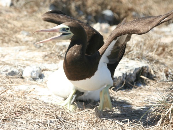 Blue-footed boobies are calm