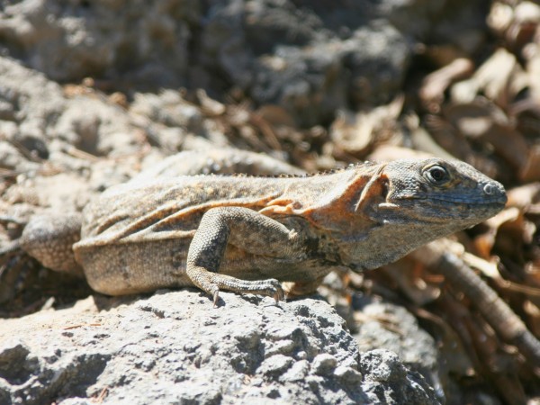 Apparently the original town was entirely on top of the hill and later spread out to the land below. She pointed out the details of the architecture and the ruins' modern day inhabitants - several large lizards sunning themselves high above.