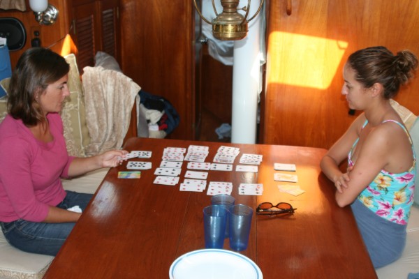 Sara and Mari deep in a game of russian patience