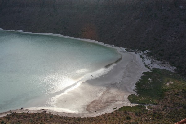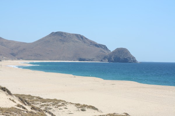 The beach is fantastic, a huge expanse of creamy sand and blue blue water. The 30-knot winds blowing in La Paz weren't evident at all, and Jeff and I did some bodysurfing as we hiked along looking for whales.