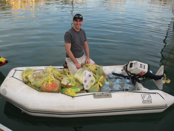 Duane and our magic dinghy of groceries