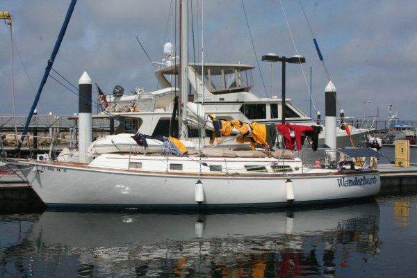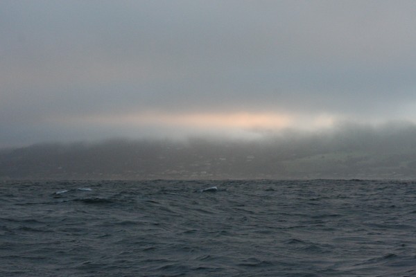 No pics of the punishment we endured over the next 20 hours. It wasn't fun. The waves were sharp and choppy the rest of the day and almost all night. Even with the wind the wave frequency was too high for a comfortable motion and it got worse when the wind calmed overnight, we didn't have the sails easing the boat over the crest of waves and we were slapped about fiercely. We arrived in Monterey early the next morning completely exhausted.