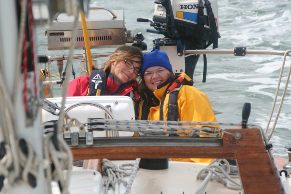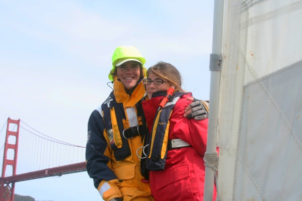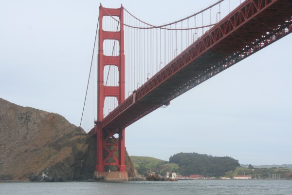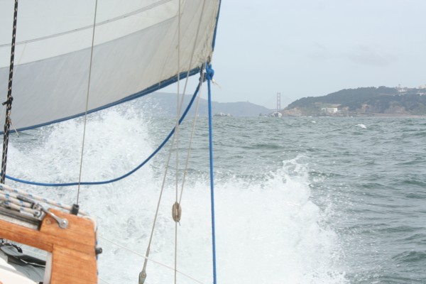 Our overnight was easy: lots of light from the moon, calm weather, and not much other traffic. I took a double-length watch and let the girls sleep. First light was off Half-Moon Bay, our first stop what seemed like forever ago, and we had perfect sailing right under the Golden Gate bridge.